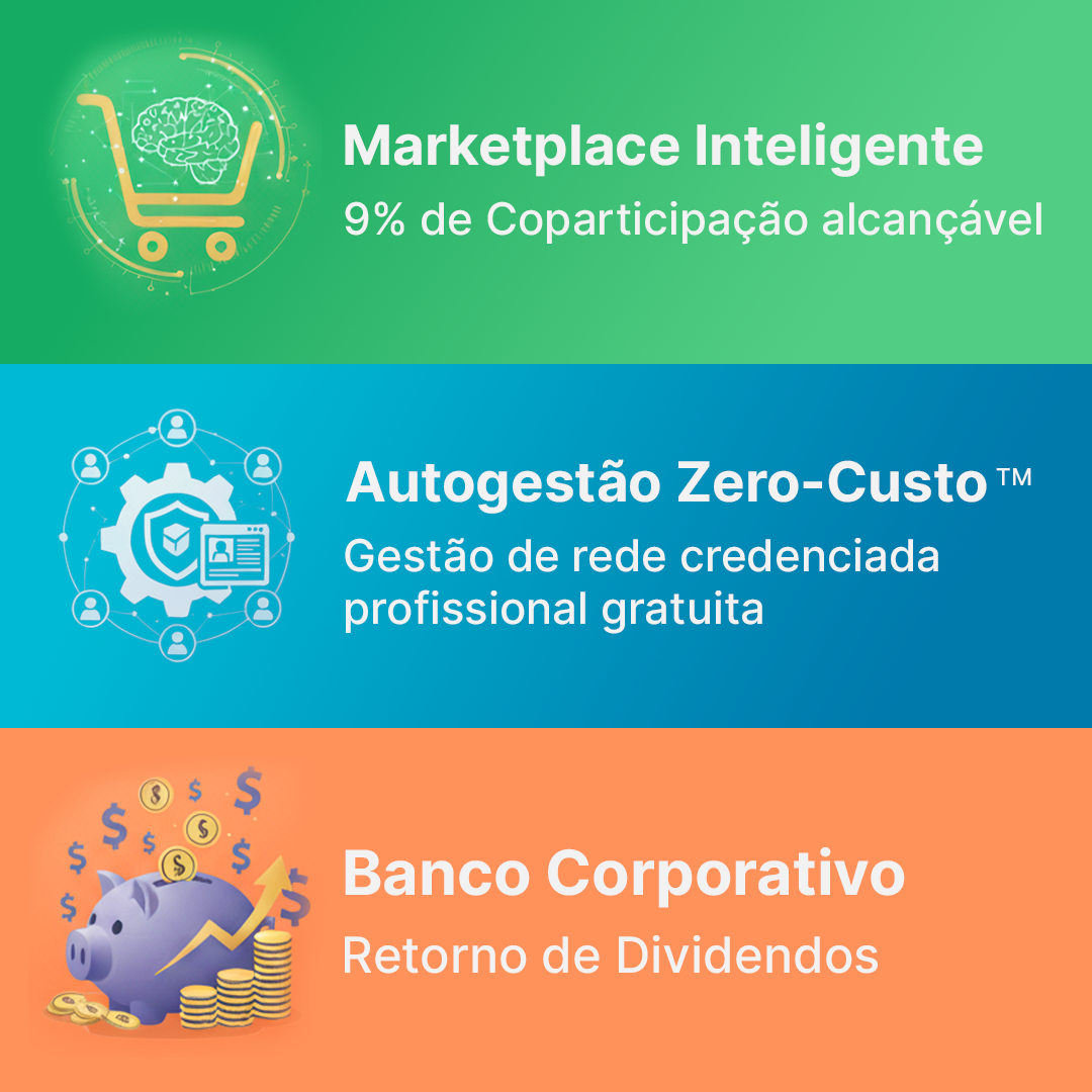 Somos o único benefício de saúde que aceita CLT + PJ + familiares + sócios e ainda geramos dividendos mensais para sua empresa.