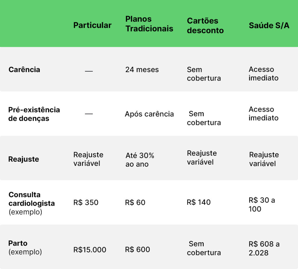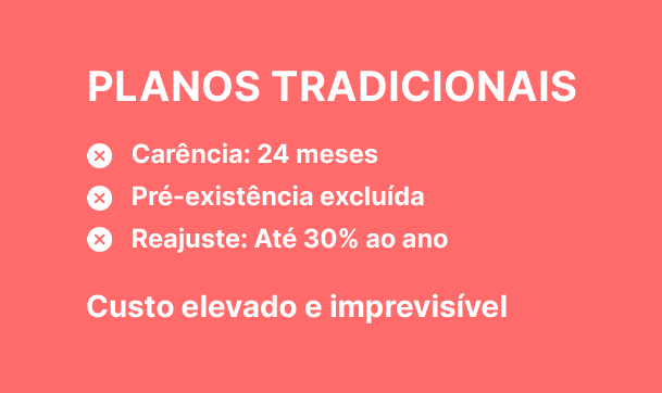 Não somos um plano de saúde tradicional, mas garantimos acesso completo a consultas, exames, internações e pronto-socorro.